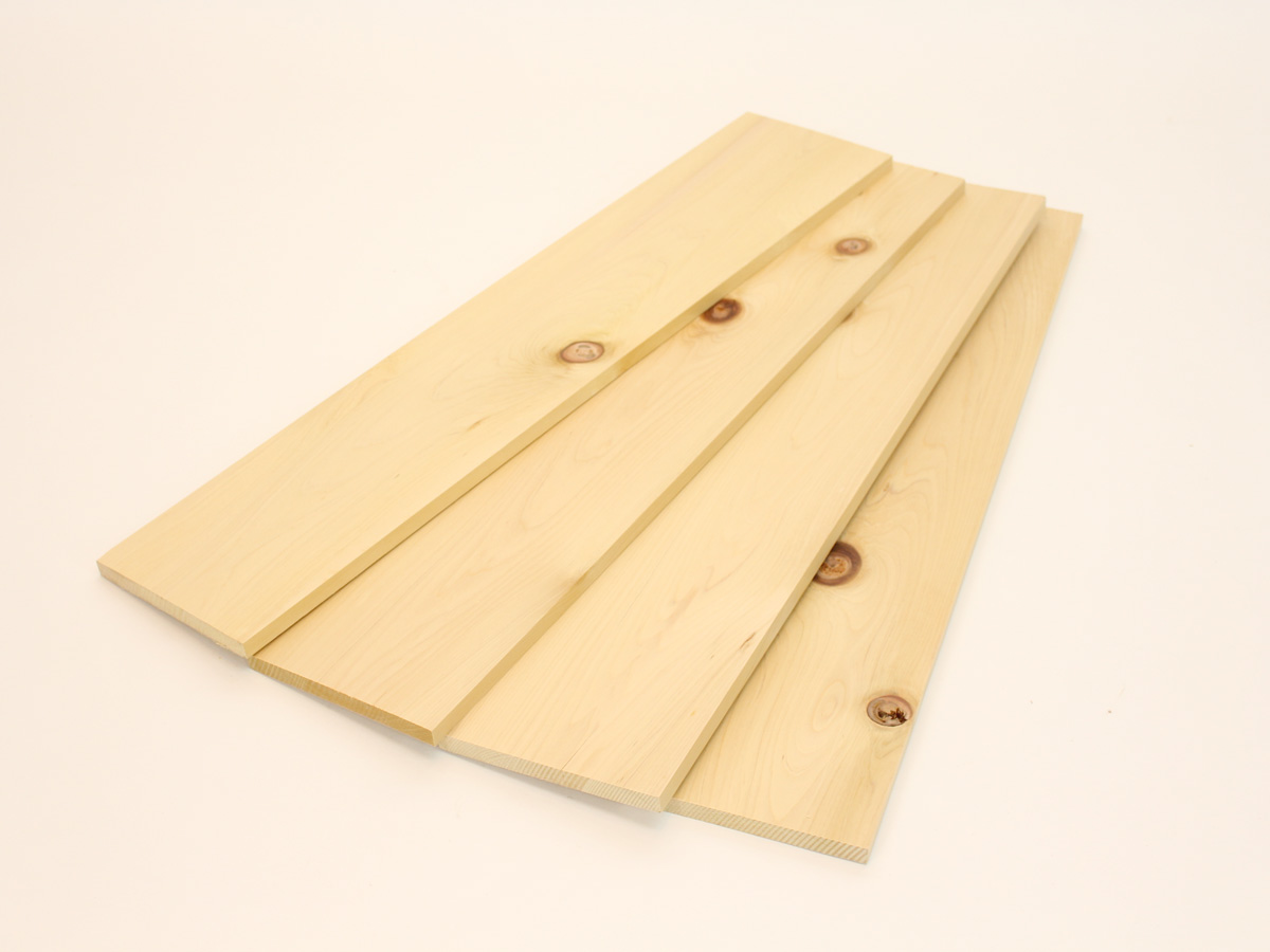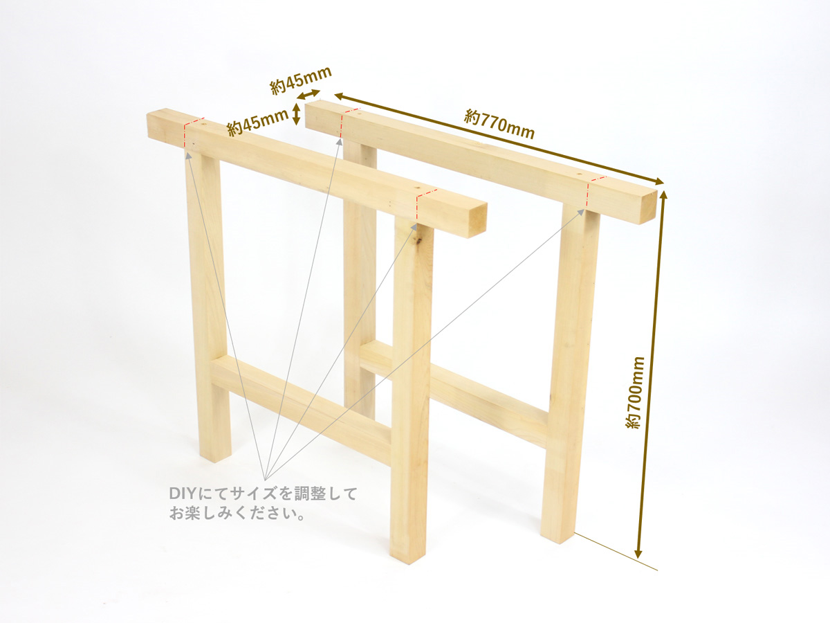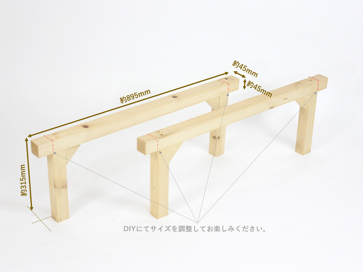 この商品は、青森ヒバ製の「板4枚」と「脚部パーツ1ペア」がセットになったDIY家具づくりキットです。