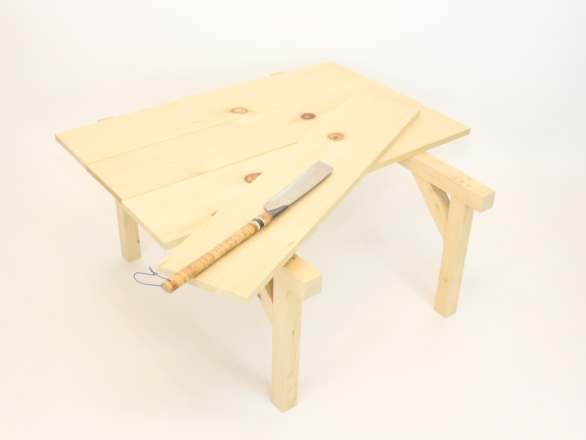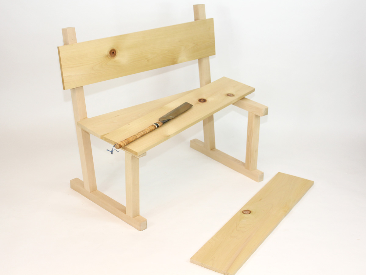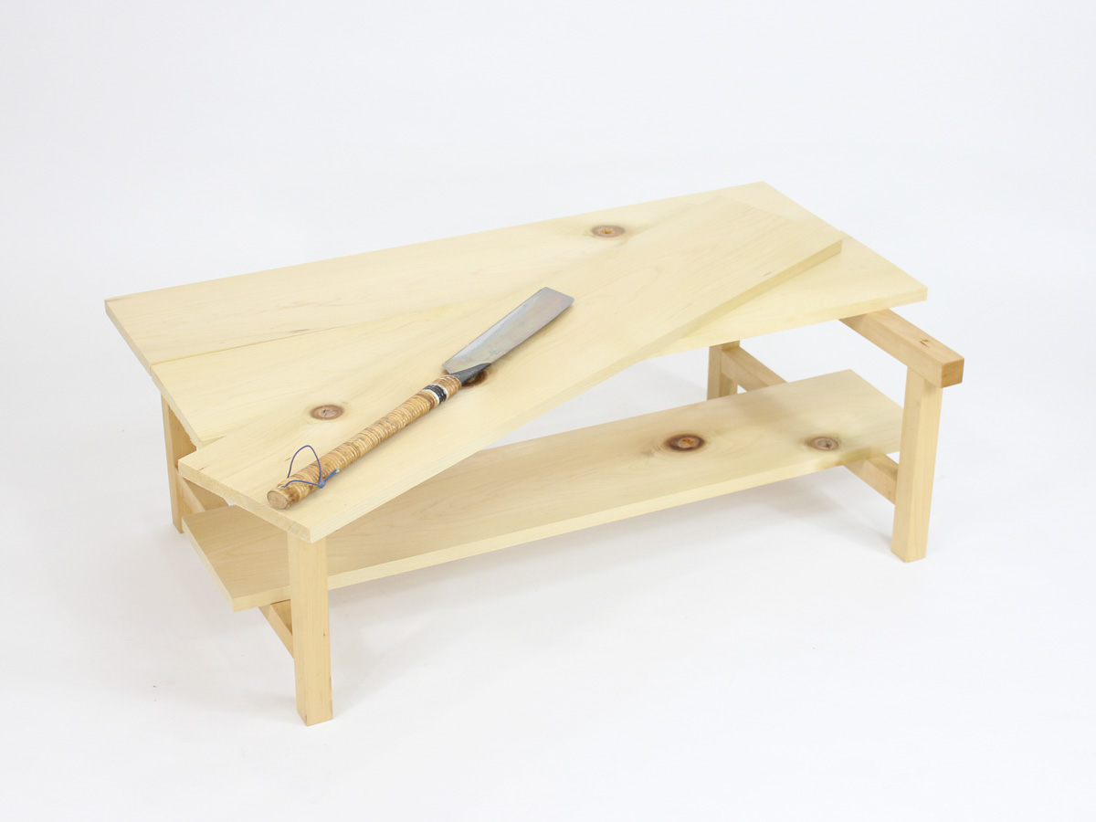 サイズを微調整しながら、青森ヒバのテレビ台、椅子、ベンチ、棚などが完成します。
