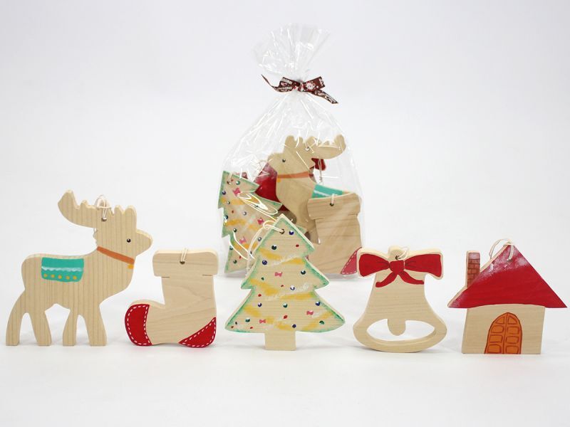 青森ヒバ製 クリスマスオーナメント(小)この商品は、青森ヒバ製のクリスマスツリー飾りです。かわいい小さなオーナメント5個がセットになっています。 ご自宅用に!お世話になった方へのプレゼントに…