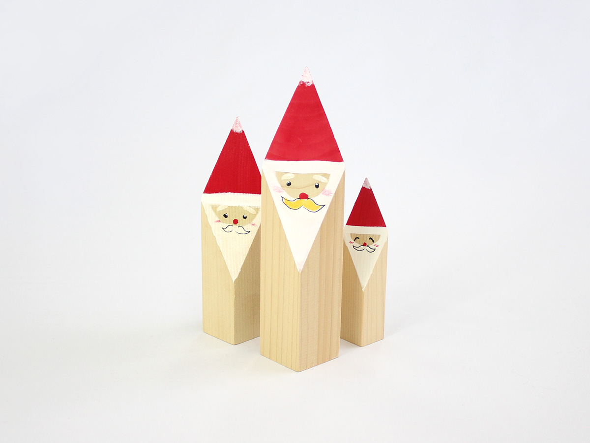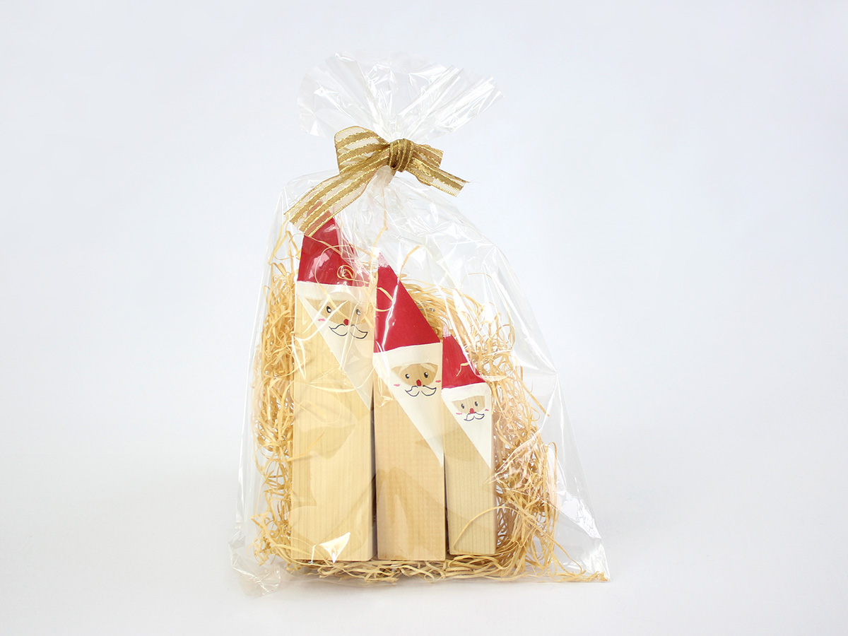 青森ヒバ製のクリスマス飾り、かわいらしい3体のサンタさんセットです。