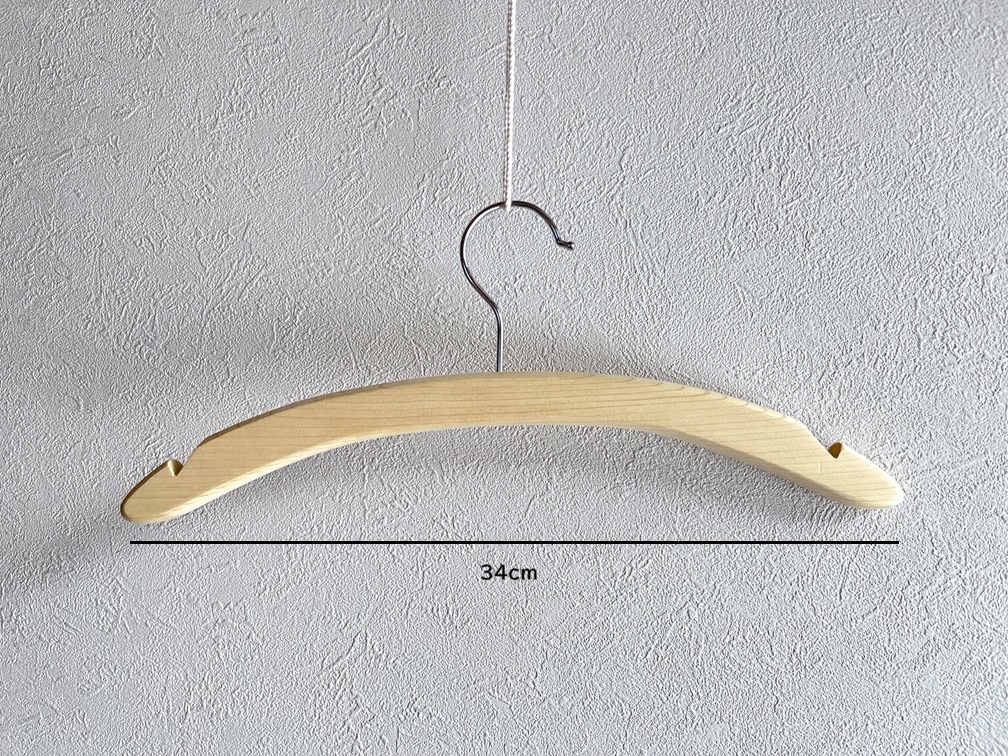 ・天然木の為、稀にヒバオイルがうっすらと着色することがありますので、白系や薄い色のお洋服を長期間保管する際は、ハンガーとお洋服の間にハンカチや布を挟んでお使いください。